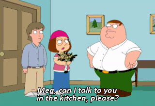 Meg, can I talk to you in the kitchen, please?