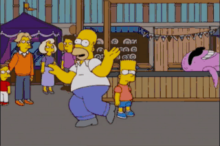 (SCATTING CONTINUES) Hey, Homer. Do fries come with that shake? Sure do. Mmm.