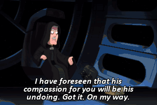 I have foreseen that his compassion for you will be his undoing. Got it. On my way. - No more of this Kurt shit. - Yeah. Leia! Leia!