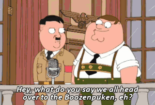 Hey, what do you say we all head over to the Boozenpuken, eh? Free beer on this motherfuhrer! Eh? Come on! (ALL CHEERING)