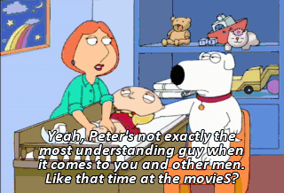 Yeah, Peter's not exactly the most understanding guy when it comes to you and other men. Like that time at the movieS?