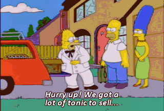 Hurry up! We got a lot of tonic to sell...