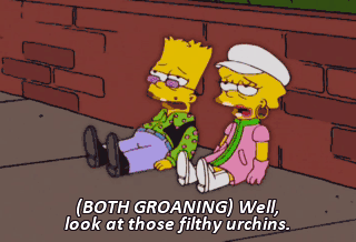 (BOTH GROANING) Well, look at those filthy urchins.
