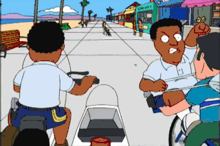 Aah! Ugh. Taste that? That's the taste of beach justicE. Lois, Are you crazy? Yeah, me and Dad haven't missed a Gumbel 2 Gumbel yet. You're gonna miss this one, young man.