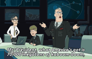 Mr. President, what America's got is 70,000 megatons of kaboom-boom, and I say we show it right up this floating head's ass.
