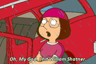 Oh, My God. I hit William Shatner. Light growing dimmer. Can't breathe. Beam me up, God.
