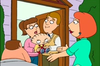 Quagmire. Peter. Cleveland. Joe. Bonnie. Lois. Cleveland. Lois. Bonnie. Quagmire. Peter. ahem. Loretta. Come on, Peter. That ought to slow them down.