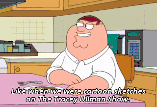 Like when we were cartoon sketches on The Tracey Ullman Show.