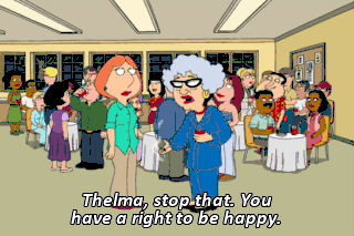 Thelma, stop that. You have a right to be happy.