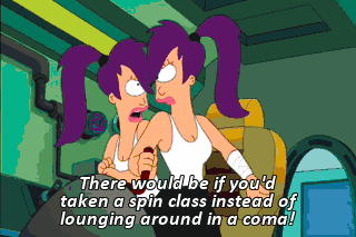 There would be if you'd taken a spin class instead of lounging around in a coma! LEELA: This is crazy.