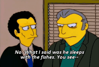 No. What I said was he sleeps with the fishes. You see-- Uh, Tony, please! No. I just ate a whole plate of "dingamagoo."