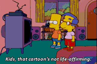 Kids, that cartoon's not life-affirming. We're going to watch a show... about the everyday problems of angels. Now back to Good Heavens. Jesus called today. He did? I'm bored.