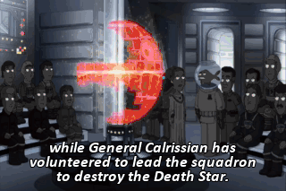 while General Calrissian has volunteered to lead the squadron to destroy the Death Star.