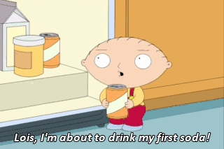 Lois, I'm about to drink my first soda! Better come stop me! That must be the sugar. Oh, God, that's good! Rupert, suddenly I want to run! Chase me! (GIGGLING)