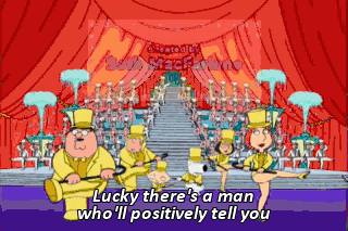 Lucky there's a man who'll positively tell you all the things that make us laugh 'n' cry He's a family guy oh, Let's see. We got soda, purple stuff, uh,