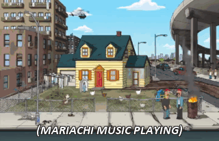 (MARIACHI MUSIC PLAYING) (DOG BARKING)
