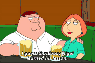 I guess that lousy Nigel learned his lesson. Whatever he gets is too good for him.