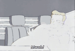 Mwah! Hey! Look what I snagged, Marge. The candy bride and groom from the wedding cake. Mmm. Pointy.