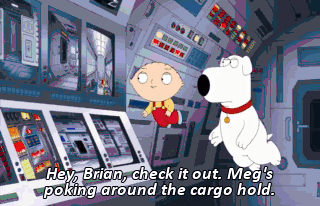Hey, Brian, check it out. Meg's poking around the cargo hold. I'm gonna give her a little scare.