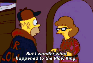 But I wonder what happened to the Plow King. Well, I guess he just doesn't respect his customers. Oh, could you make sure not to scrape my asphalt. Kiss my asphalt. So I says, "Kiss my asphalt." Hmm? Hmm?