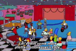 Let's twirl some more platters at Greaser's Cafe, where the '50s are never goin' away! Well, that dream is over. At least we still have each other. Right, honey? Honey?