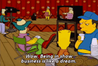 Wow. Being in show business is like a dream. We're really lucky, aren't we? I wish I was dead. Don't listen to him, kid. This is a dream factory.