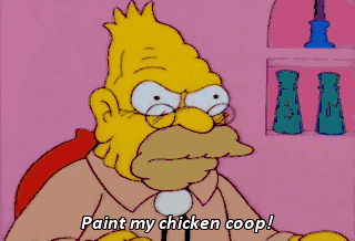 Paint my chicken coop! Make me! That does it. One of them has to go. Okay. Grandpa.