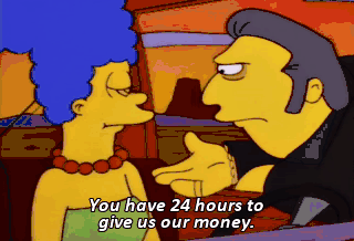 You have 24 hours to give us our money. And to show you we're serious, you have 12 hours. See you at 6:00 a.m.