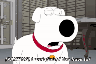 (PANTING) I can't finish! You have to! How would we explain it half-eaten? There's no going back from this. (GAGGING) (PANTING) It's done.