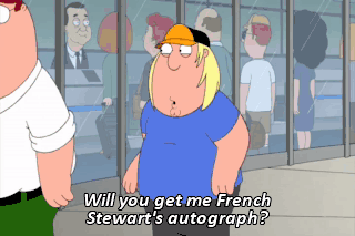 Will you get me French Stewart's autograph? Say hello to the Pont Neuf for me, or as I like to call it, my inspiration point... Oop, you're gone.