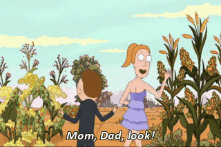Mom, Dad, look! Strawberries on a cob! Whoa! Hey, check this out! Flowers on a cab! Huh. Strawberries and flowers on a cob, huh? That's pretty cool. Are those... mountains on a cob?