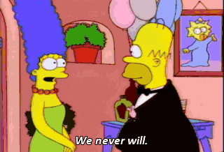 We never will. Dearly beloved-- Wait! I want one last chance to enjoy single life. Okay, ready. I will now read the special vows which Homer has prepared...