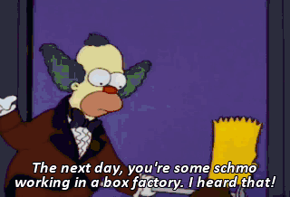 The next day, you're some schmo working in a box factory. I heard that! Boy, show business is kind of cruel, isn't it?