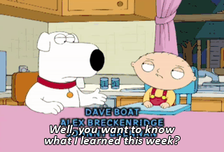 Well, you want to know what I learned this week? Being a grown-up sucks. Women, Brian, what a royal pain in the ass!