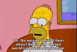 Oh. No wonder I didn't hear about Bart being elected world's greatest sex machine.