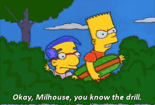 Okay, Milhouse, you know the drill. Right. You go over and wow them. I hide in the shrubs. Hot stuff comin' through. My friendship-- You know you want it.