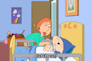 Cut it out! I'm gonna give you a flubber kiss. Oh, Lois, that tickles! Flubber-belly, pork-belly Stewie.