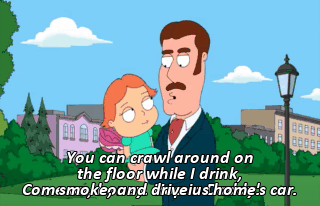 Come on, honey. Hop in Daddy's car. You can crawl around on the floor while I drink, smoke, and drive us home.