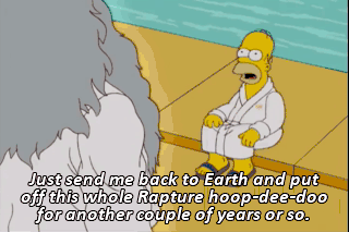 Just send me back to Earth and put off this whole Rapture hoop-dee-doo for another couple of years or so.