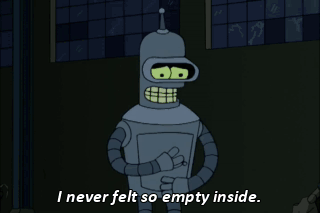 I never felt so empty inside. Bender, I'm alive! You didn't hurt me at all but I know you wanted to, and that's what matters.
