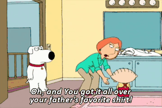 Oh, and You got it all over your father's favorite shirt! Now, Go to your room!