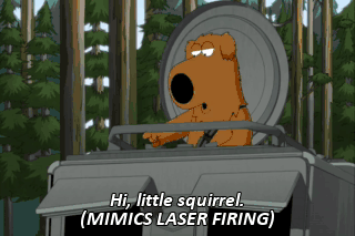 Hi, little squirrel. (MIMICS LASER FIRING)