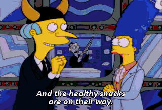 And the healthy snacks are on their way. You can't take our doughnuts! Yaah! Right. Anyone else want to be a hero? Ooh. Marge, I'm giving you a raise and a new office... right next to mine.