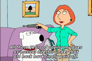 All those years of paying my dues as musical director under that old hack have finally paid off. Oh, Lois, congratulations.