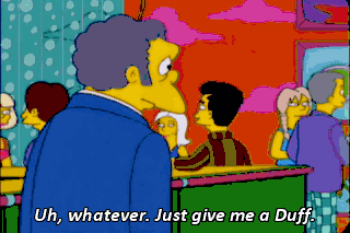 Uh, whatever. Just give me a Duff. We don't serve Duff no more. We got a Malaysian beer that's better than Duff. - It's made outta soy sauce. - Whatever. Just give me a Duff.