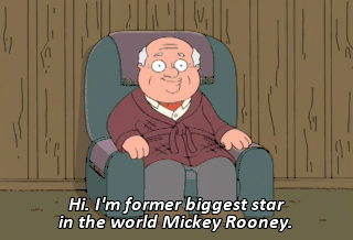 Hi. I'm former biggest star in the world Mickey Rooney. And as you may know, I am totally and completely insane. I like to yell at mice with my shirt off.