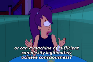 or can a machine of sufficient complexity legitimately achieve consciousness? I agree. I need some time to figure this out. Until then, friends?