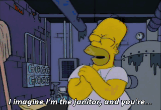 I imagine I'm the janitor, and you're... the janitor's wife, who has to live with me in the utility room.