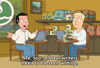 Me, too. All real writers need to be seen writing. Otherwise, what's the point, right? You should totally write that down.