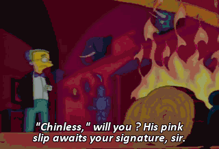 "Chinless," will you ? His pink slip awaits your signature, sir.